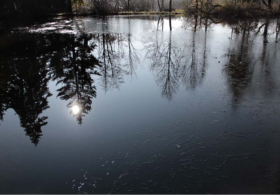Am Wochenende war ich vormittags unterwegs. Man sieht und merkt das es nachts schon richtig ungemütlich wird. Die Teiche beginnen zuzufrieren. Auf den Pflanzen hängt dick das Raureif. An diesem Vormittag waren es gerademal 5 °C. Die richtige Gelegenheit mal die Heizgriffe auszuprobieren. Vorsichtige Fahrweise ist angesagt, auf den Straßen gibt es die ersten überfrorenen Stellen. Aber nachmittags erwärmt sich die Luft auf 12-15 °C. Das sind dann schon wieder vernünftige Bedingungen zum Motorradfahren.